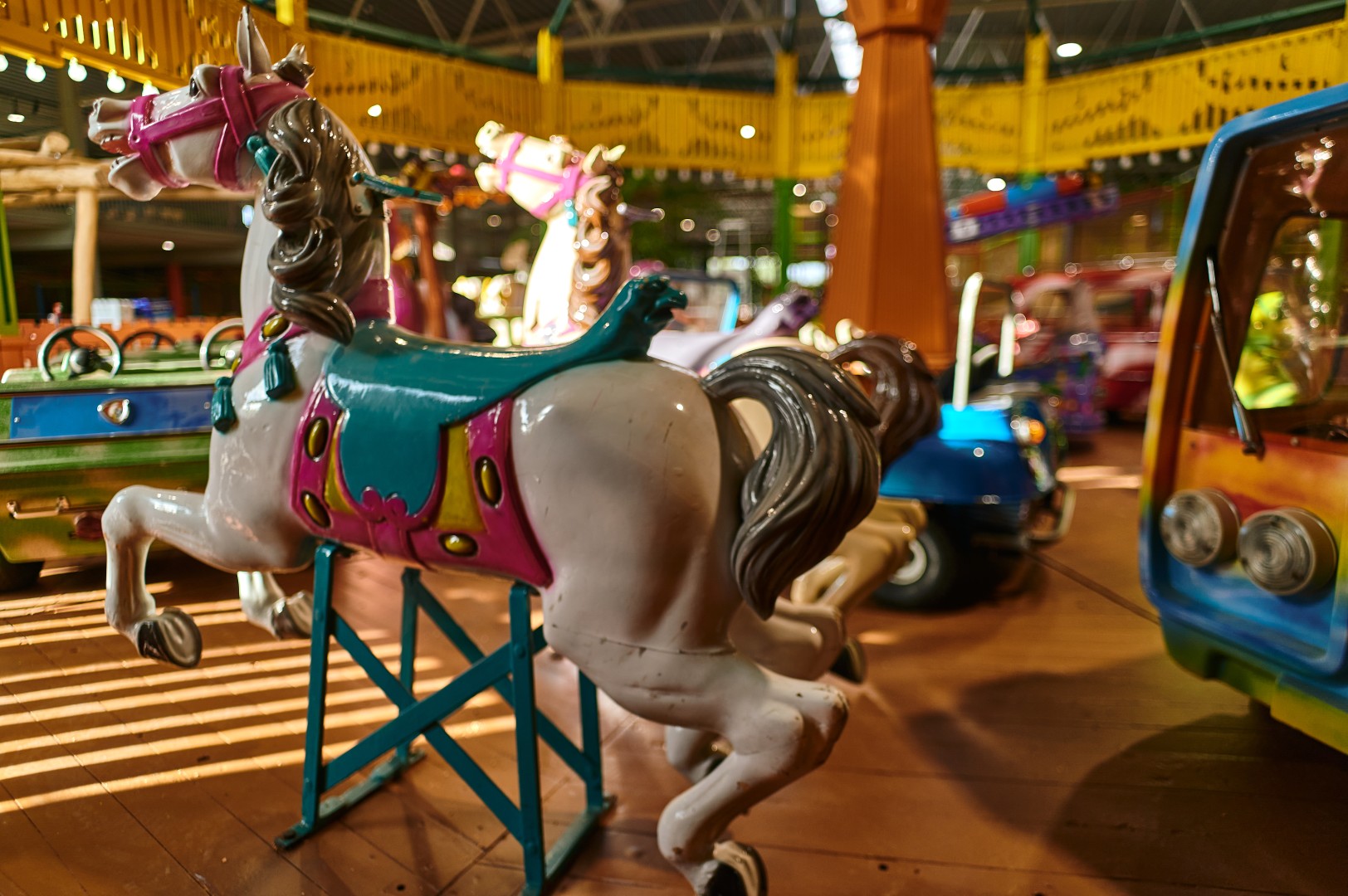 Spring aan boord van onze mooie paardenmolen en kies je favoriete plekje uit. Onze authentieke paardenmolen kan ieder kinderhartje begeren.